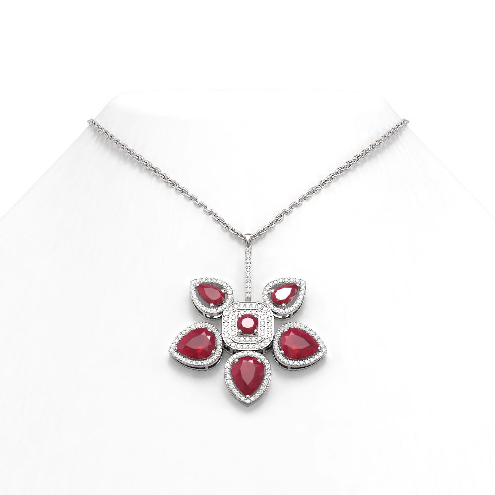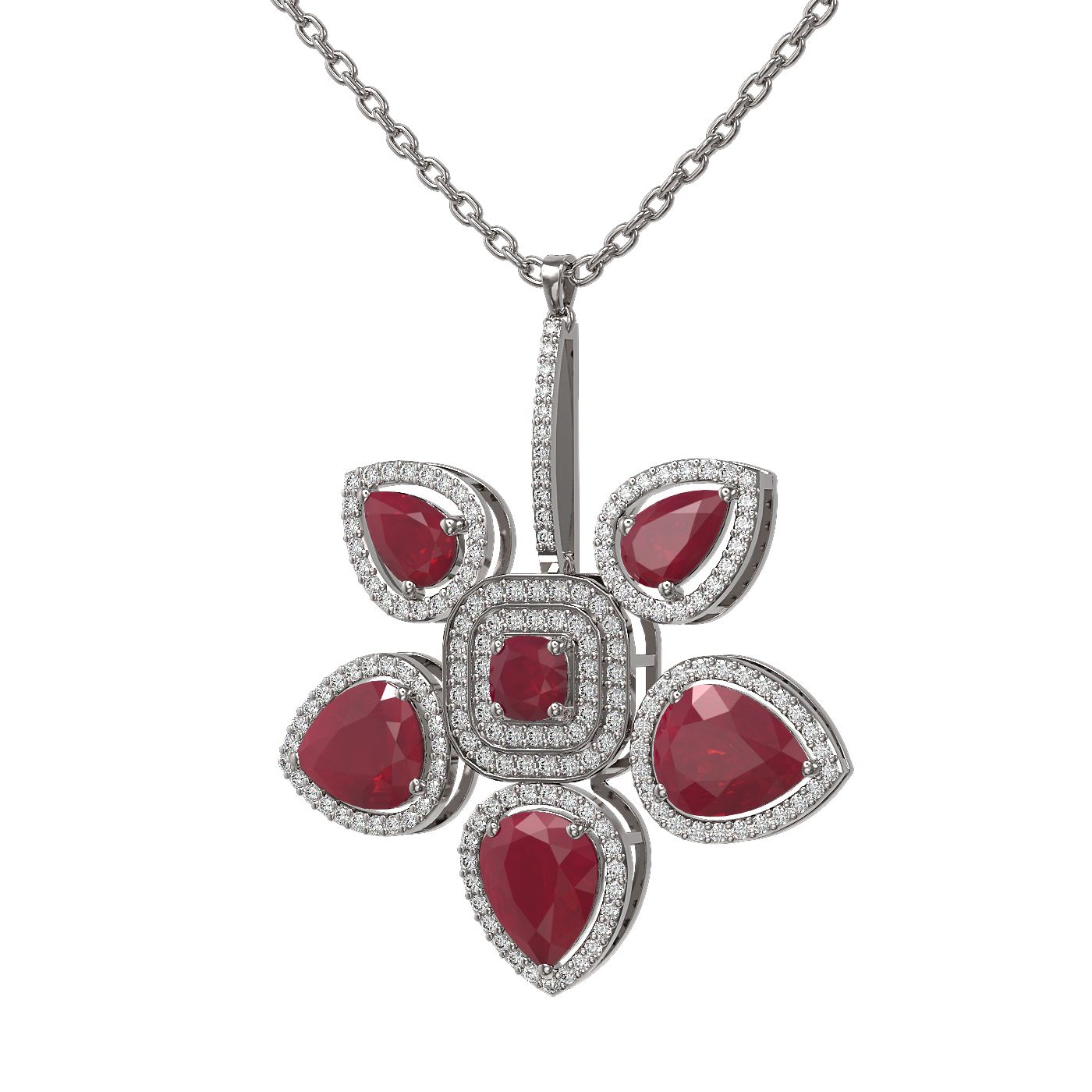 REF-343F6M - SKU: 51745 ---- 15.50 ctw Ruby Diamond Necklace 18K White Gold