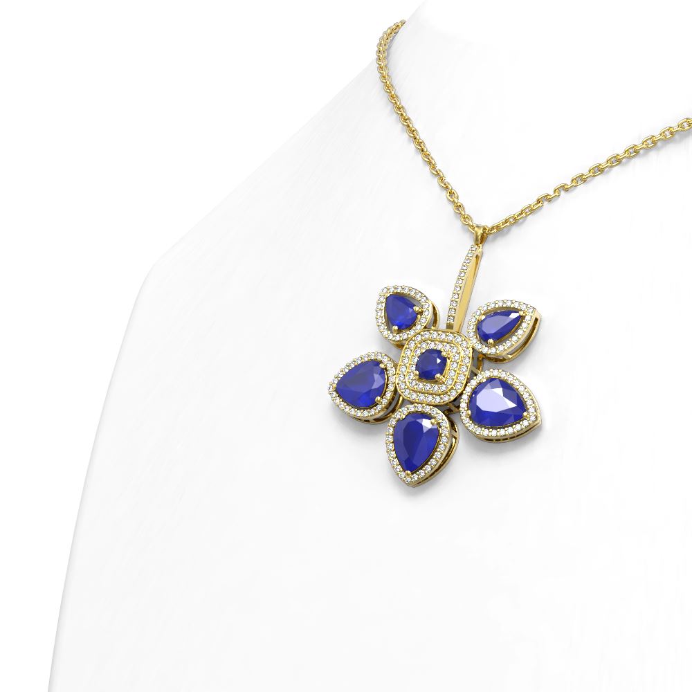 REF-343K6Y - SKU: 51750 ---- 15.50 ctw Sapphire Diamond Necklace 18K Yellow Gold