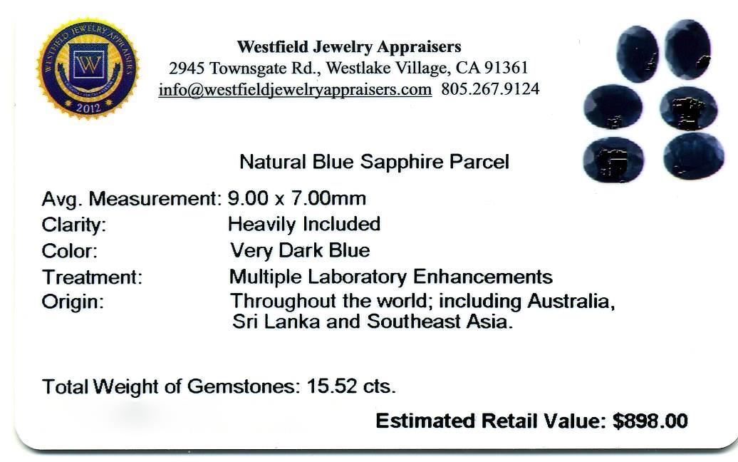 15.52cts Oval Cut Natural Blue Sapphire Parcel. Westfield Appraised at $898.00.