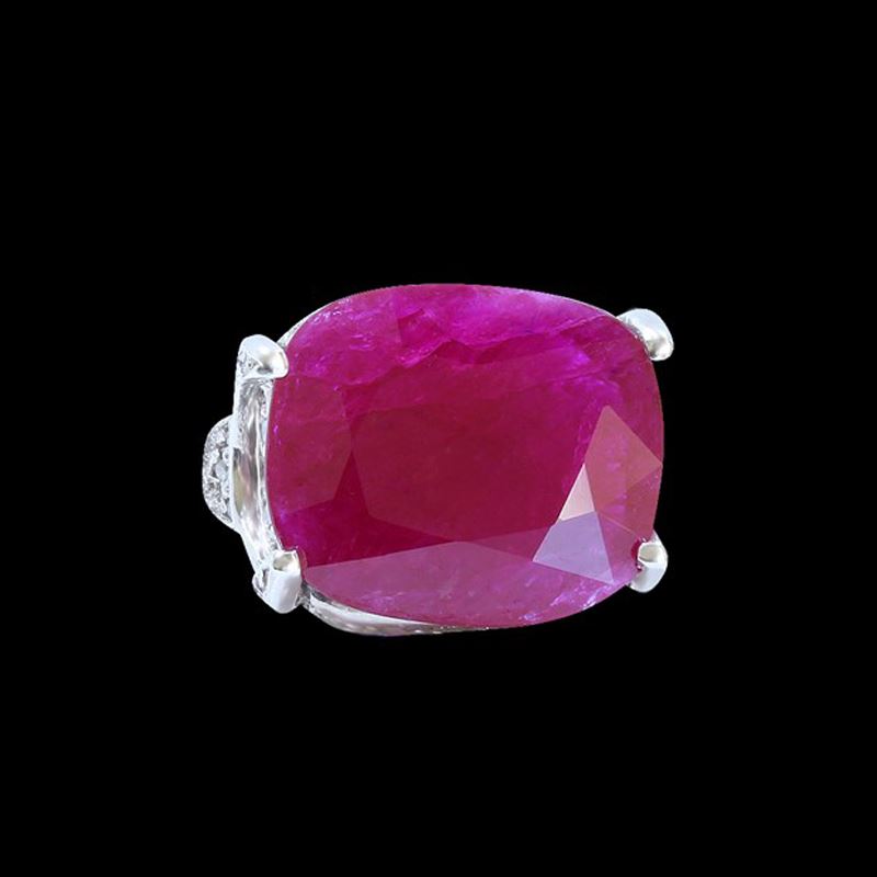 14K WHITE GOLD NATURAL RUBY RING:8.74 GRAMS/DIAMOND:0.42CT/RUBY(mainstone):15.53CT/RUBY(sidestone):0.51ct/#GVR1093/ NO LEAD OR GLASS FILLING