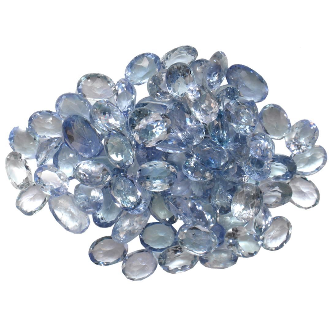 Sixty oval mixed cut natural tanzanites exact total weight 15.54ct., clarity is slightly included, type I, medium dark, slightly grayish, violetish blue color, (GIA vB 6/2), cut is good. Measurements & the color grade are an average for the group, Color grade is an average for the group, Transmitting light with no distortion, transparent, Indications of laboratory high temperature heat treatment. Westfield Appraised at $1,495.00.