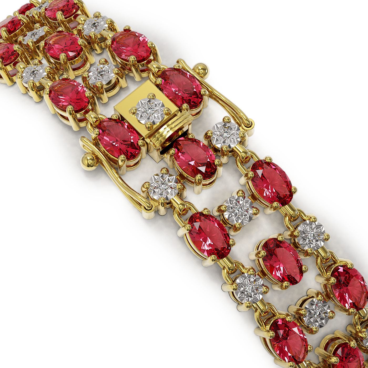 SKU: 40977 ---- 15.64 ctw Tourmaline & Diamond Row Bracelet 10K Yellow Gold