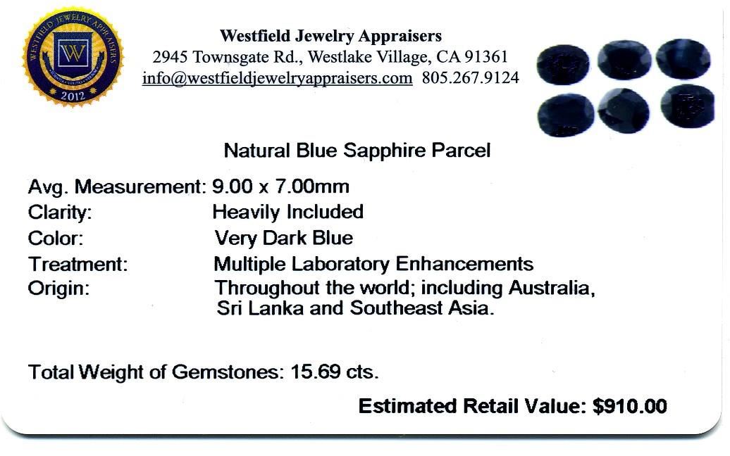 15.69cts Oval Cut Natural Blue Sapphire Parcel. Westfield Appraised at $910.00.