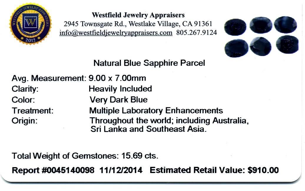 15.69cts Oval Cut Natural Blue Sapphire Parcel. Westfield Appraised at $910.00.