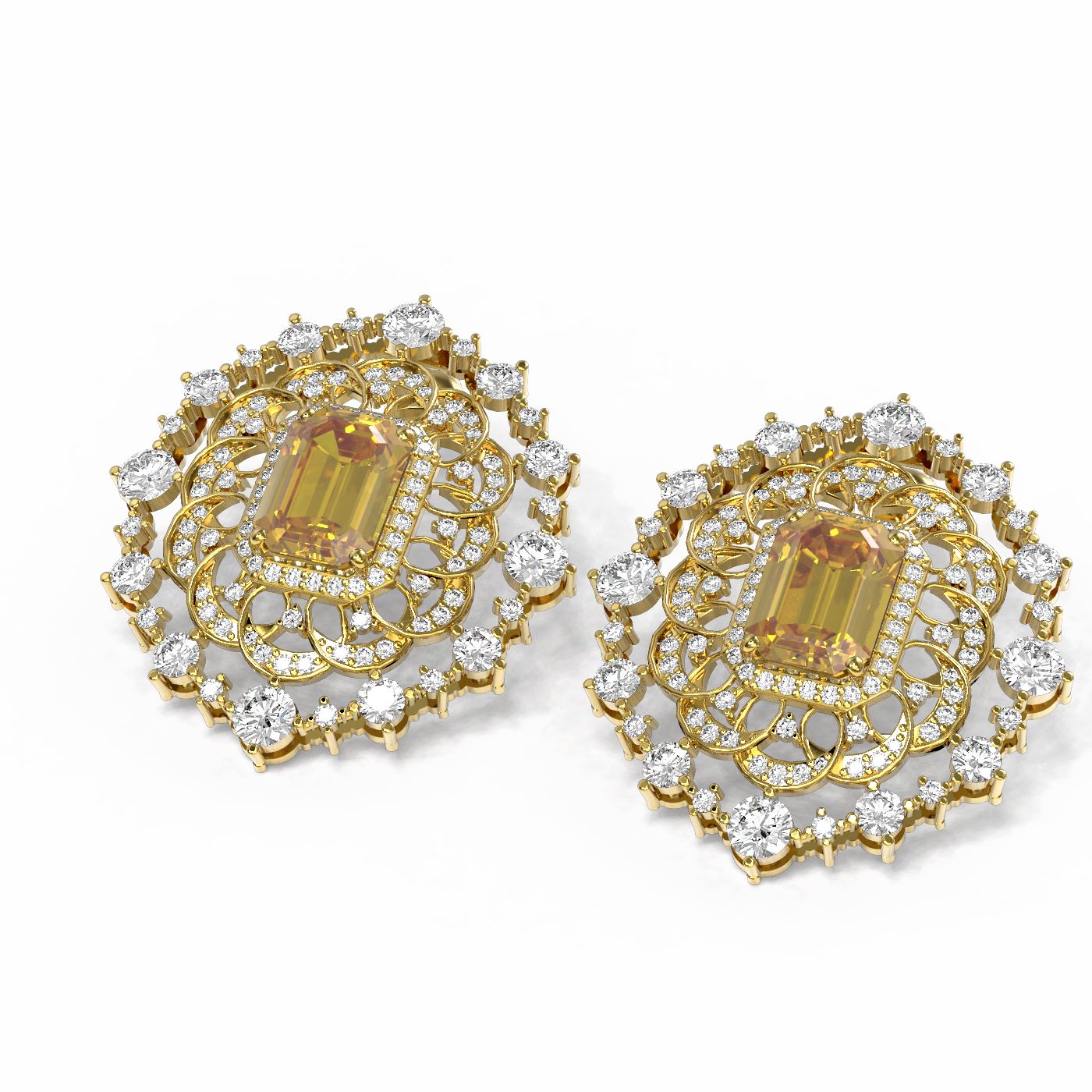 SKU: 53572 ---- 15.71 ctw Canary Citrine & Diamond Earrings 18K Yellow Gold