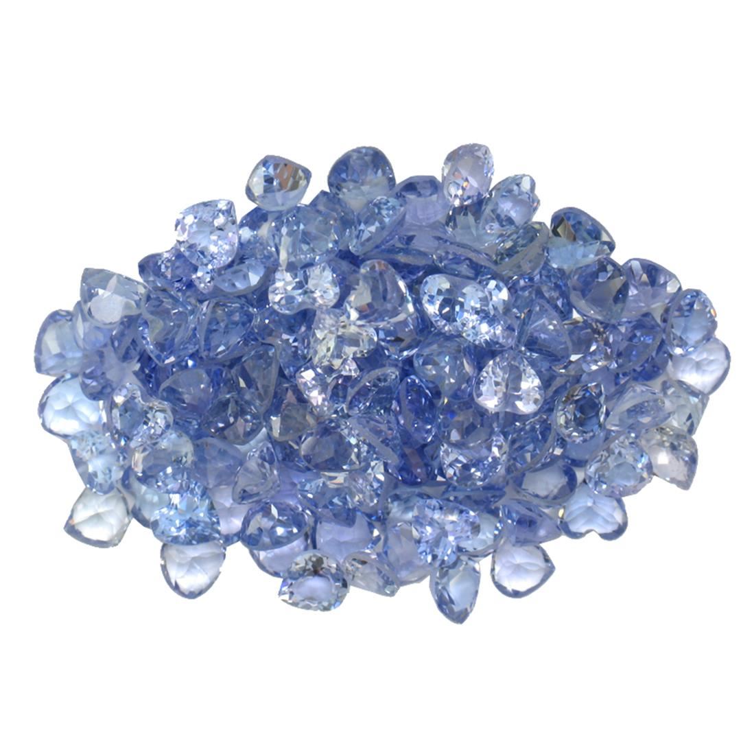 Fifty round mixed cut natural tanzanites, measuring 3.00 - 3.00 x 1.95 mm, exact total weight 15.71ct., clarity is slightly included, type I, medium, very slightly grayish, violetish blue color, (GIA vB 5/3), cut is good. Measurements & the color grade are an average for the group, Color grade is an average for the group, Transmitting light with no distortion, transparent, Naturally occurring internal & external characteristics are present, Indications of multiple laboratory enhancements, including high temperature heat treatment. Westfield Appraised at $1,510.00.
