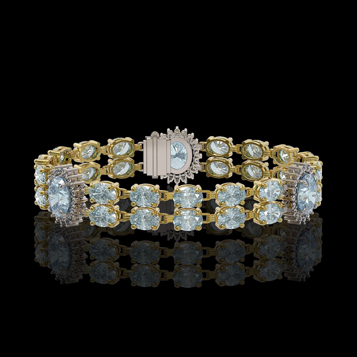 REF-254R5K - SKU: 44251 ---- 15.72 ctw Aquamarine & Diamond Bracelet 14K Yellow Gold