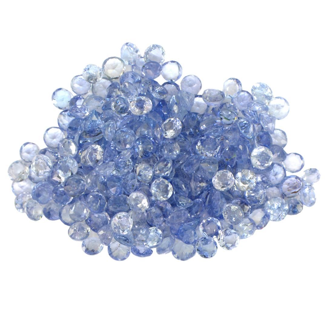 Fifty round mixed cut natural tanzanites, measuring 2.00 - 2.00 x 1.30 mm, exact total weight 15.74ct., clarity is slightly included, type I, medium, very slightly grayish, violetish blue color, (GIA vB 5/3), cut is good. Measurements & the color grade are an average for the group, Color grade is an average for the group, Transmitting light with no distortion, transparent, Naturally occurring internal & external characteristics are present, Indications of multiple laboratory enhancements, including high temperature heat treatment. Westfield Appraised at $1,515.00.