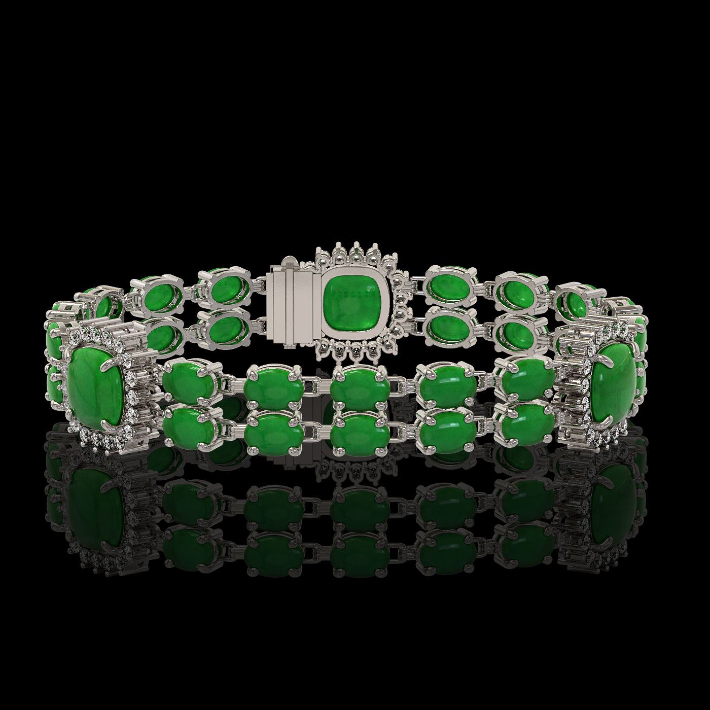 REF-263X6A - SKU: 44792 ---- 15.79 ctw Jade & Diamond Bracelet 14K White Gold