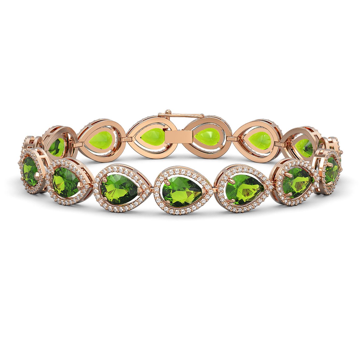 15.8 ctw Peridot & Diamond Micro Pave Halo Bracelet 10K Rose Gold