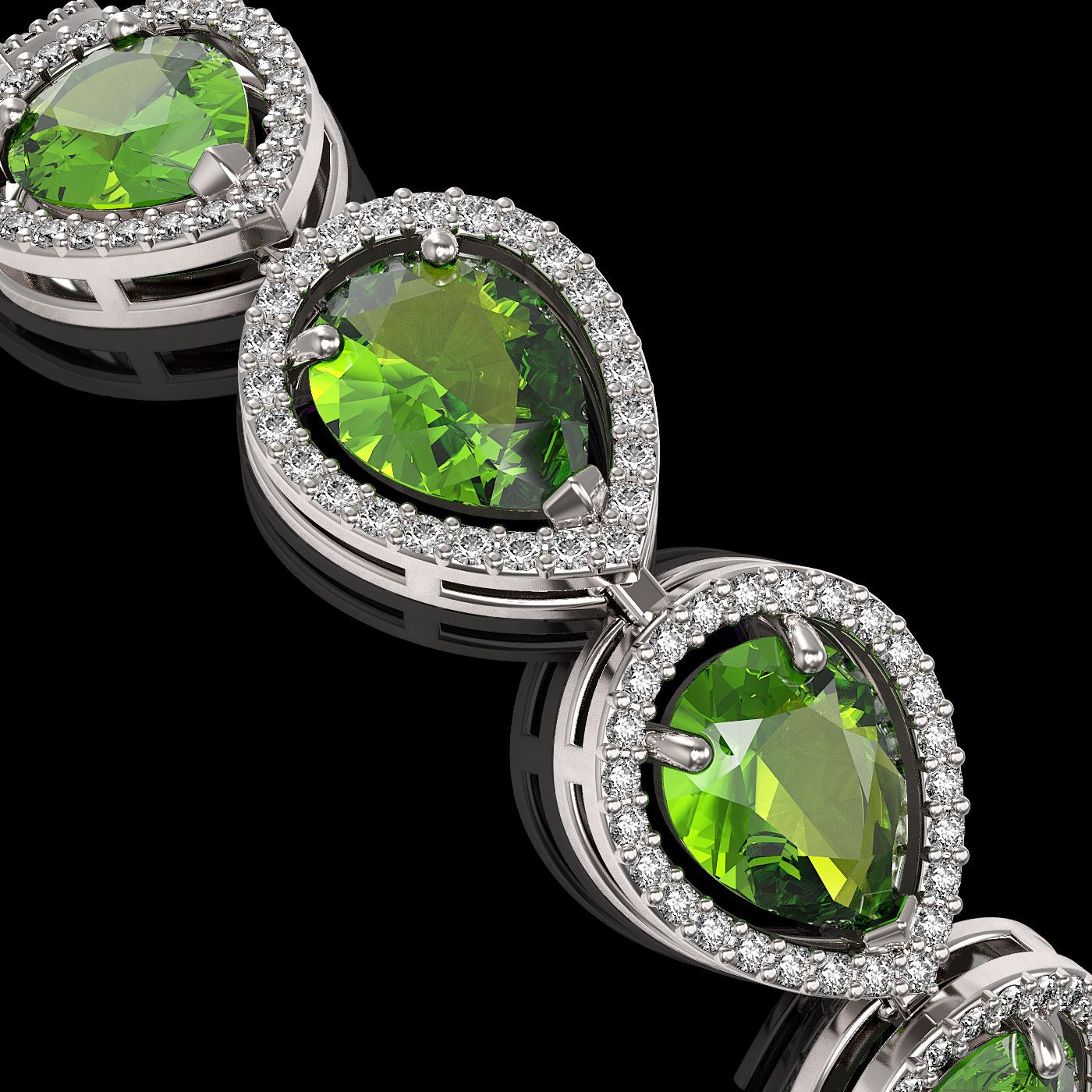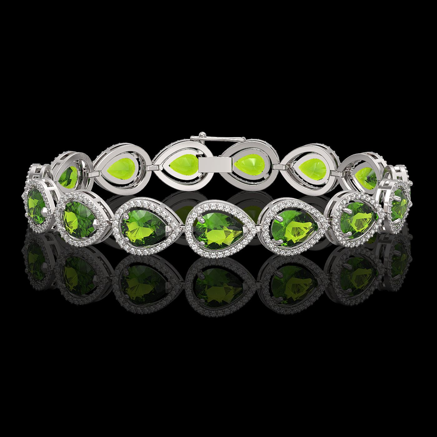 REF-316F8M - SKU: 41261 ---- 15.8 ctw Peridot & Diamond Micro Pave Halo Bracelet 10k White Gold