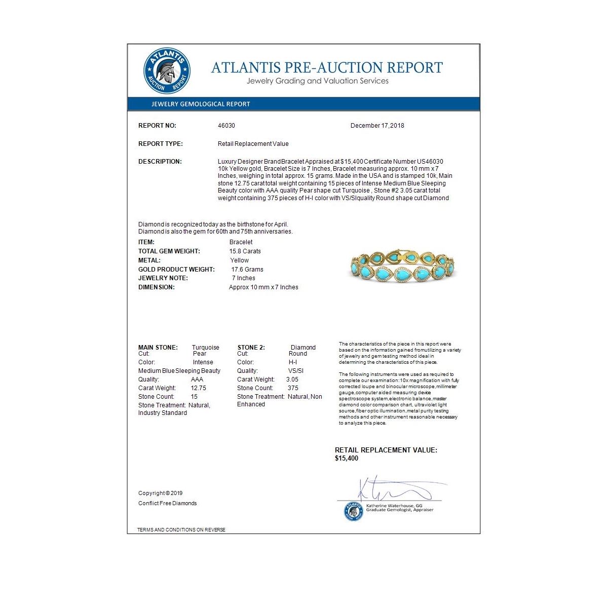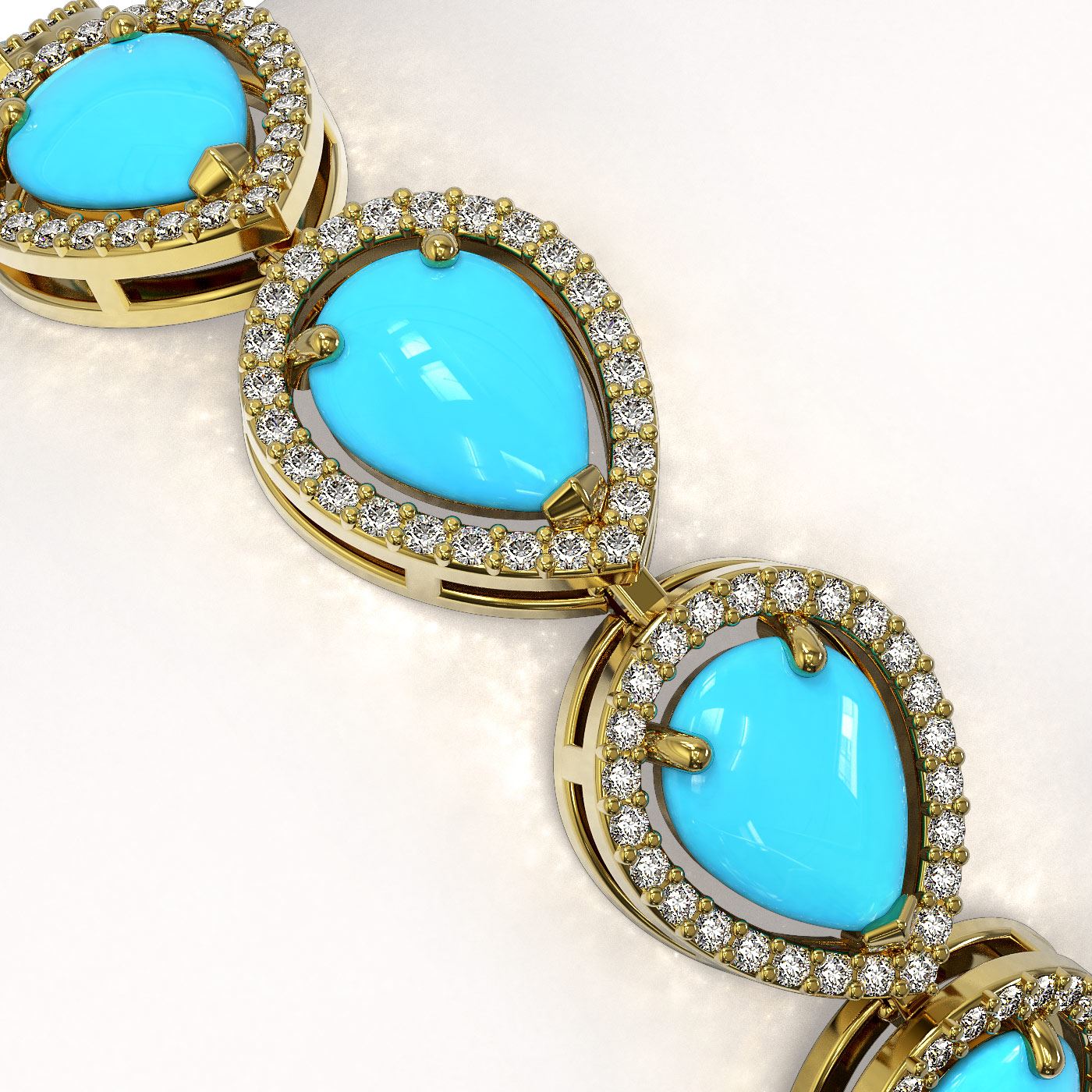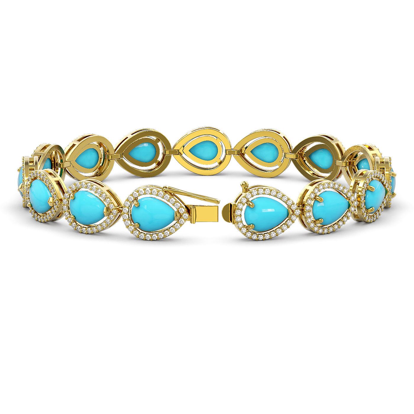 15.8 ctw Turquoise & Diamond Halo Bracelet 10K Yellow Gold