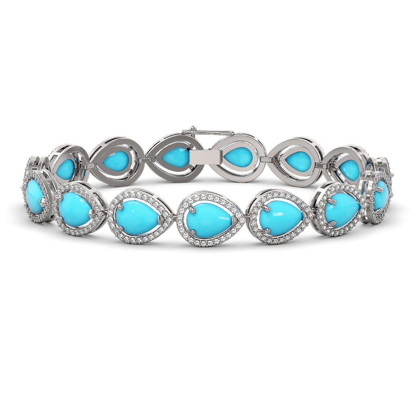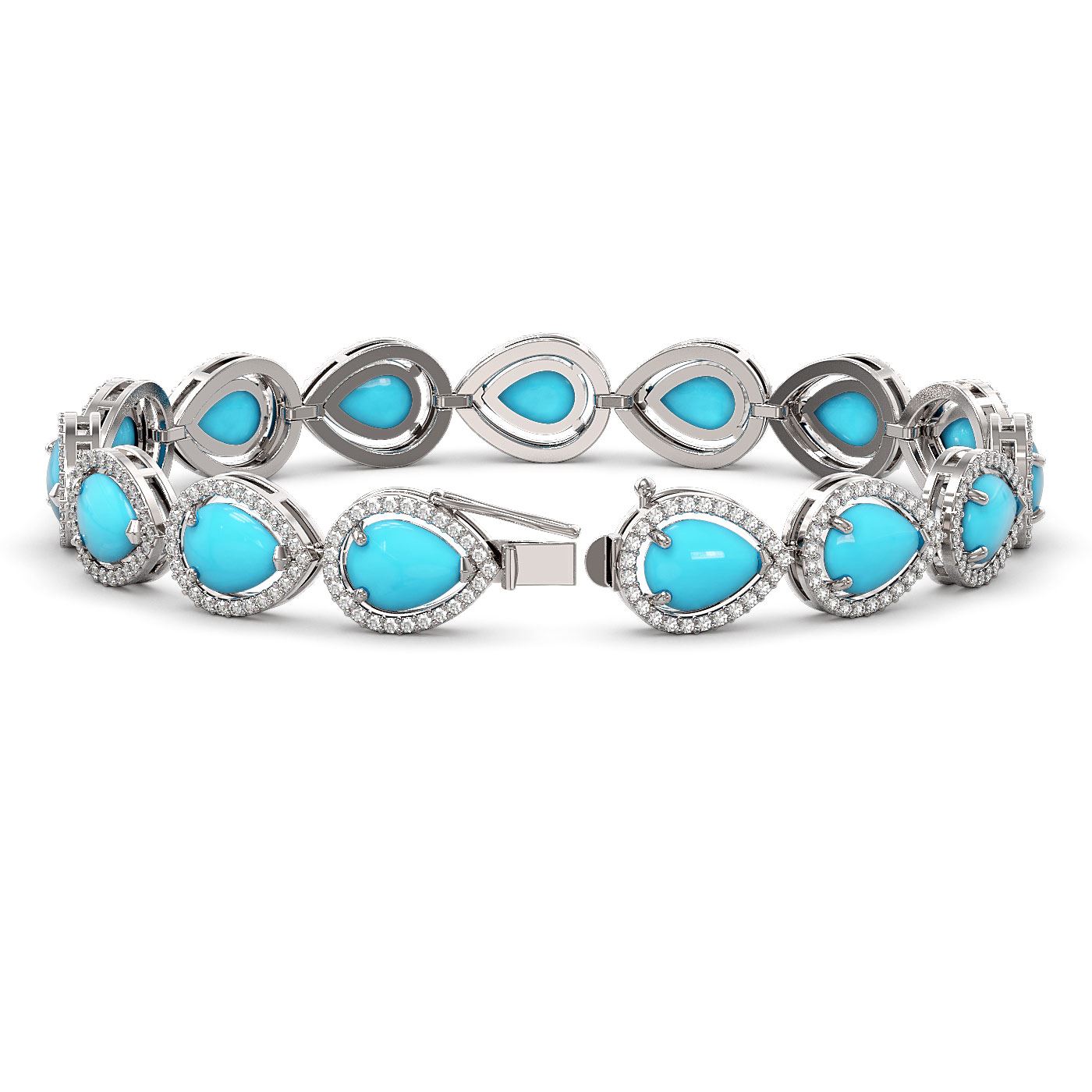 15.8 ctw Turquoise & Diamond Micro Pave Halo Bracelet 10K White Gold