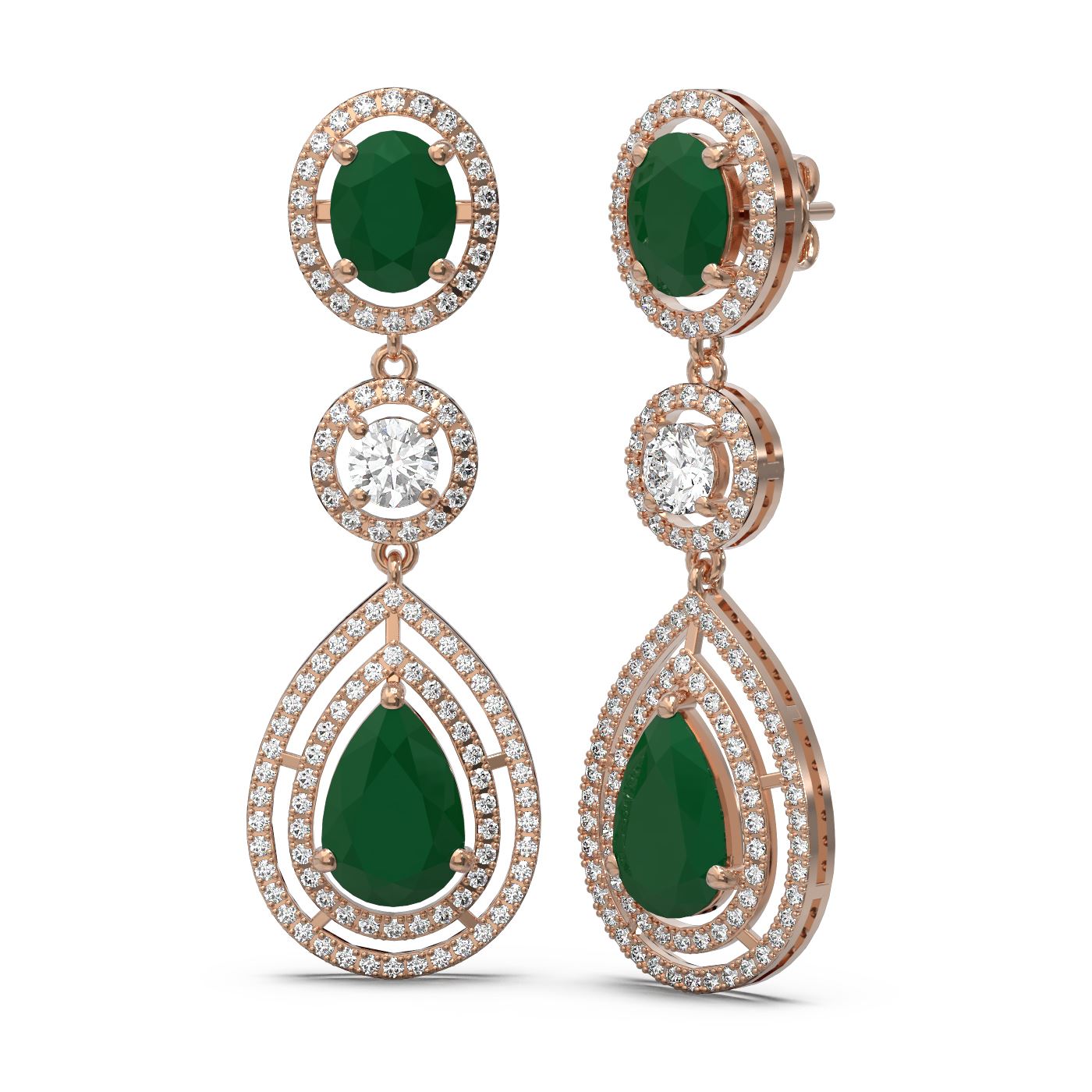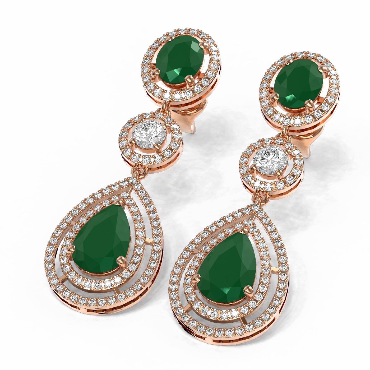 SKU: 51359 ---- 15.82 ctw Emerald & Diamond Earrings 18K Rose Gold