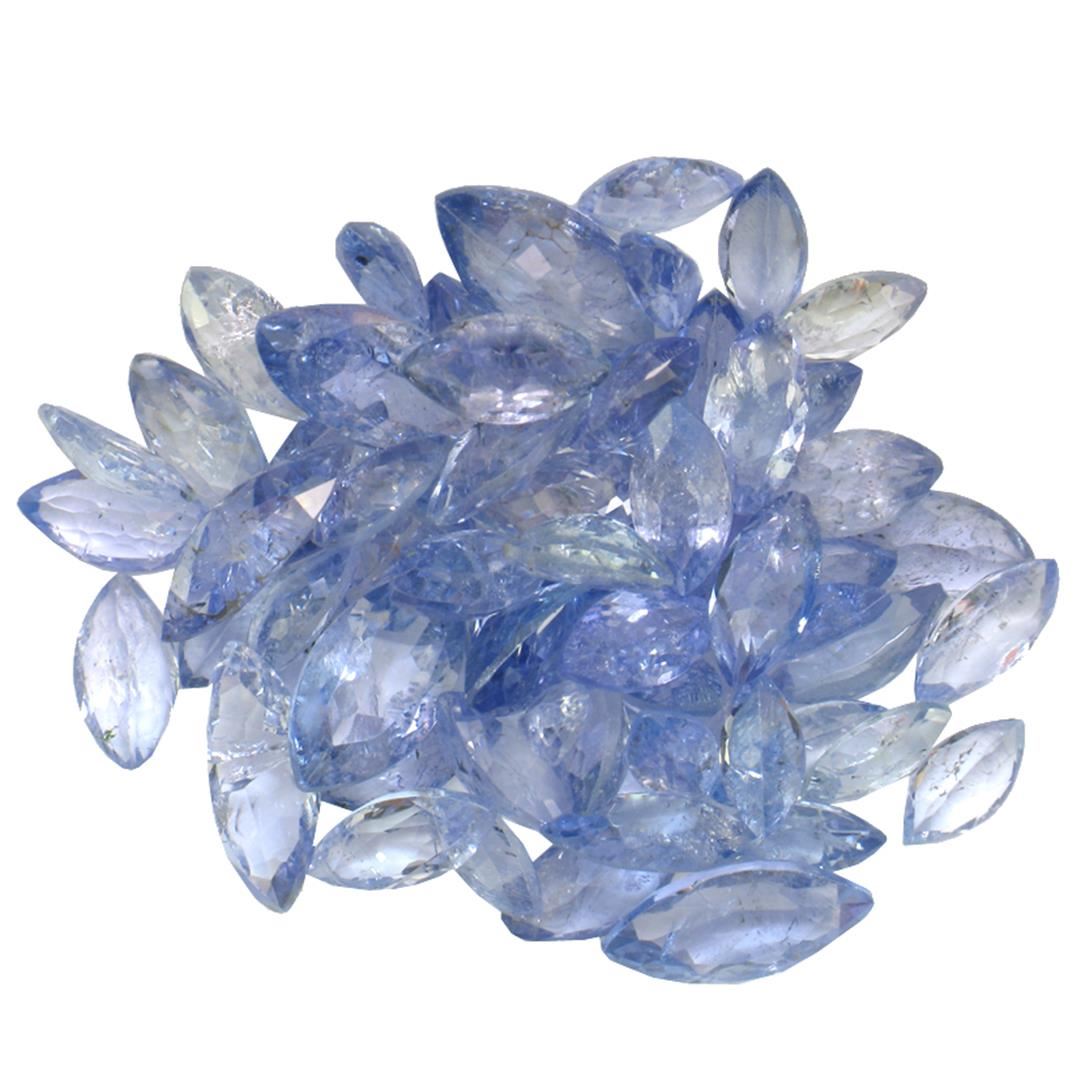 Sixty-six marquise mixed cut natural tanzanites exact total weight 15.83ct., clarity is slightly included, type I, medium dark, very slightly grayish, bluish violet color, (GIA bV 6/3), cut is good. Transmitting light with a minimum of distortion, transparent. Naturally occurring internal & external characteristics are present. Color grade is an average for the group. Tanzanite is a very rare gemstone that is only found in the country of Tanzania. Originally discovered in 1967. Tiffany & Company, named the stone Tanzanite. It is found in the Usumburu Mountains that border the Umba Valley of northern Tanzania. Tanzanite occurs in gray, brown, violet, blue, reddish-purple, & green. The gem is interesting because of its exceptional pleochroism. Rotated in different directions a tanzanite will exhibit multiple changes of color. Tanzanite has a low tolerance to ultrasonic cleaning, and should not be cleaned using this method. Westfield Appraised at $1,525.00.
