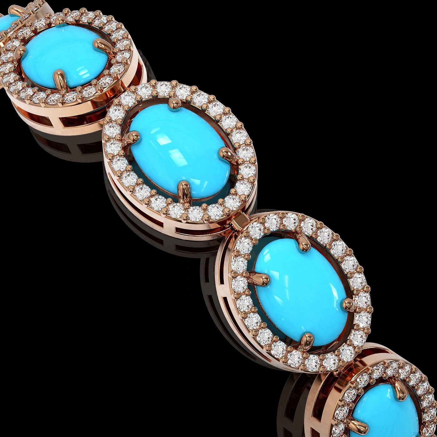 REF-260H8R - SKU: 46017 ---- 15.83 ctw Turquoise & Diamond Micro Pave Halo Bracelet 10k Rose Gold