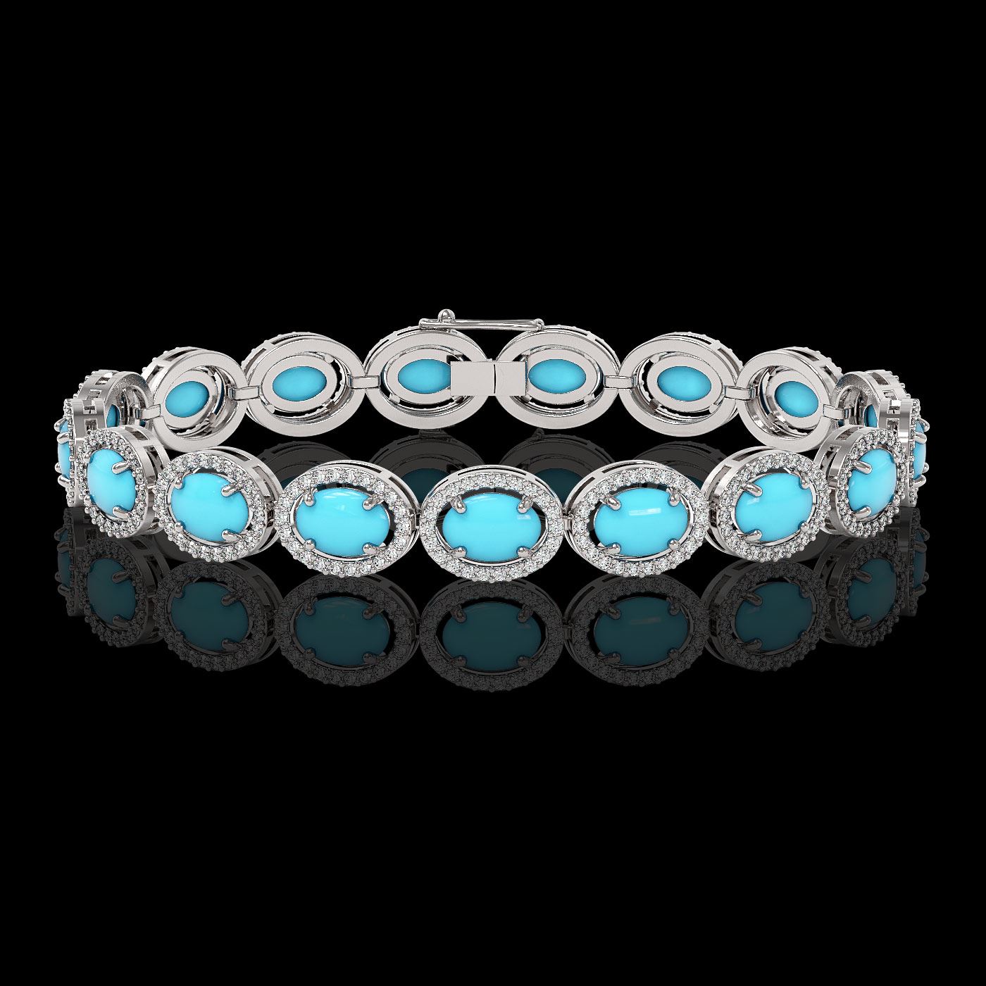 REF-260G8W - SKU: 46016 ---- 15.83 ctw Turquoise & Diamond Micro Pave Halo Bracelet 10k White Gold