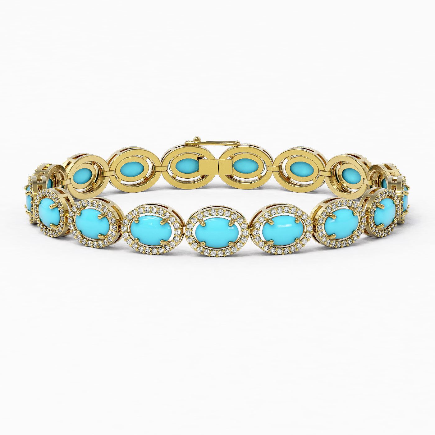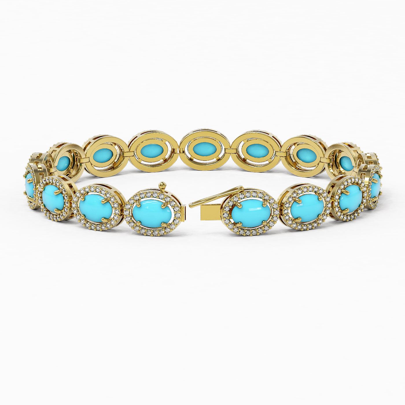 SKU: 46018 ---- 15.83 ctw Turquoise & Diamond Micro Pave Halo Bracelet 10k Yellow Gold
