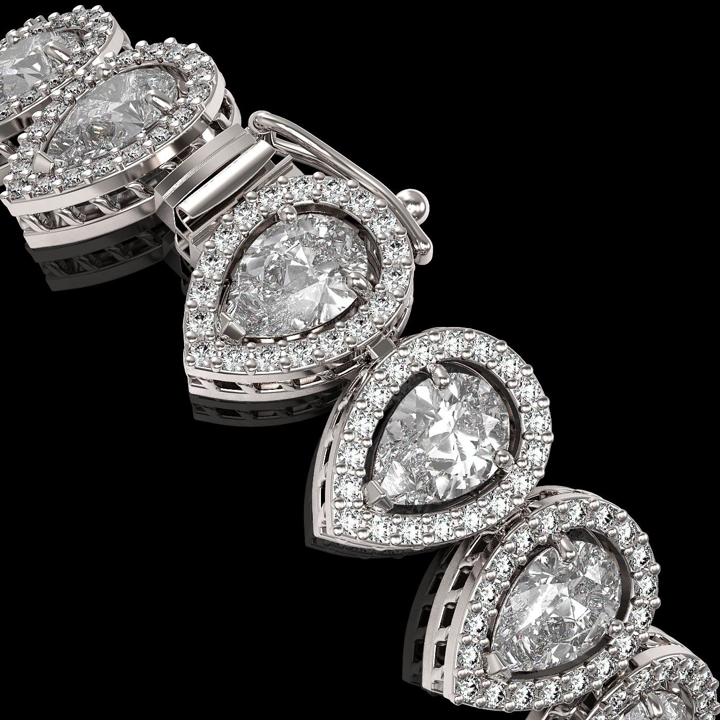 REF-2890T8M -42770 ---- 15.85 CTW Pear Diamond Designer Bracelet 18K White Gold ---- Luxury Designer Brand Bracelet Appraised at $127,200 Certificate Number US42770 18K White gold, Bracelet Size is 7 Inches, Bracelet measuring approx. 10 mm x 7 Inches, weighing in total approx. 23 grams. Made in the USA and is stamped 18K, Main stone 12.05 carat total weight containing 25 pieces of I-J color with VS/SI quality Pear shape cut Diamond , Stone #2 3.8 carat total weight containing 475 pieces of G-H color with VS/SI quality Round shape cut Diamond