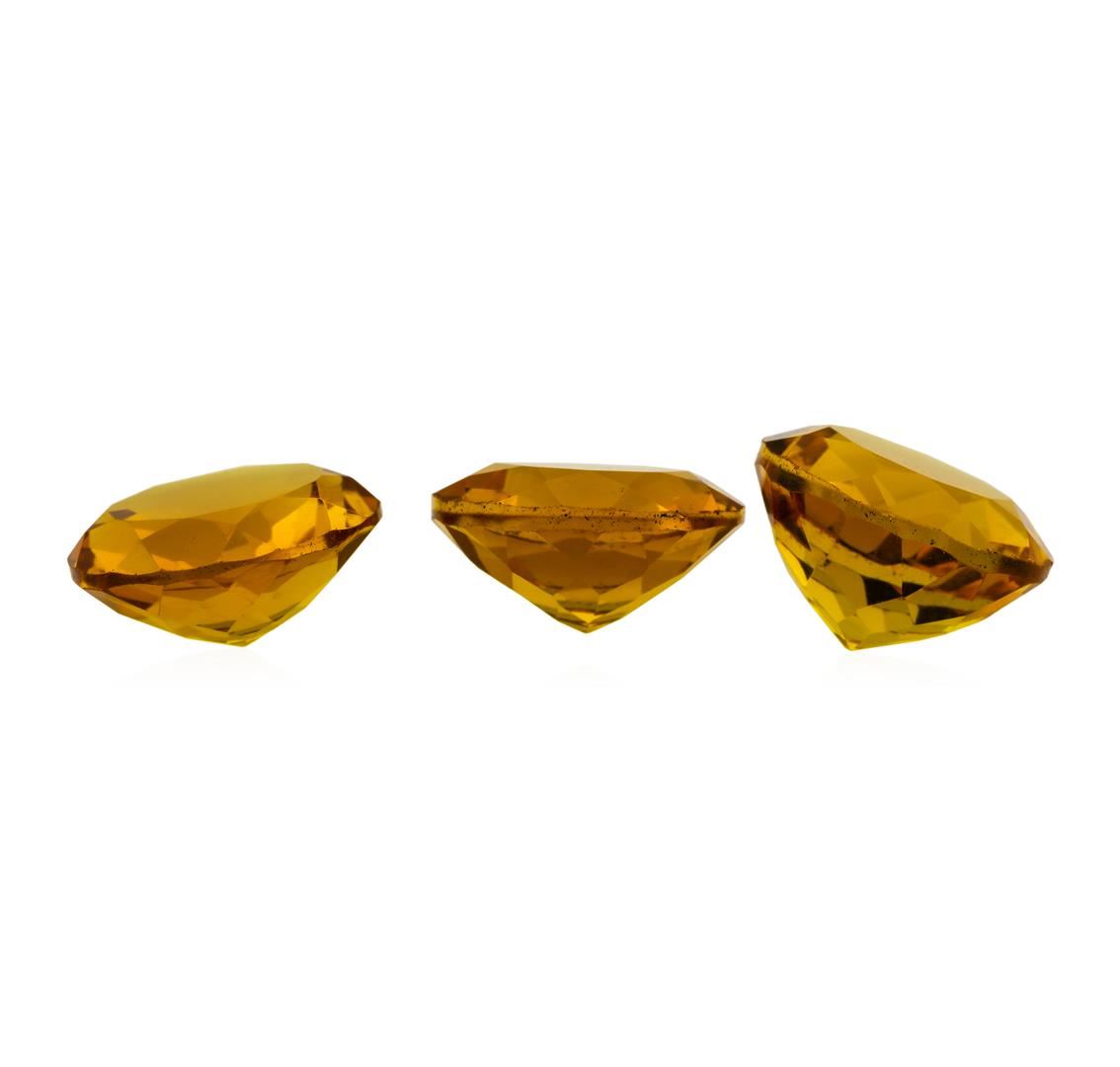 One natural round cut citrine quartz parcel of three with an exact weight of 15.85ctw., clarity is eye clean, yellowish orange, medium dark. Gemological Appraisals Services estimates the retail value at $634 GAS Appraised.