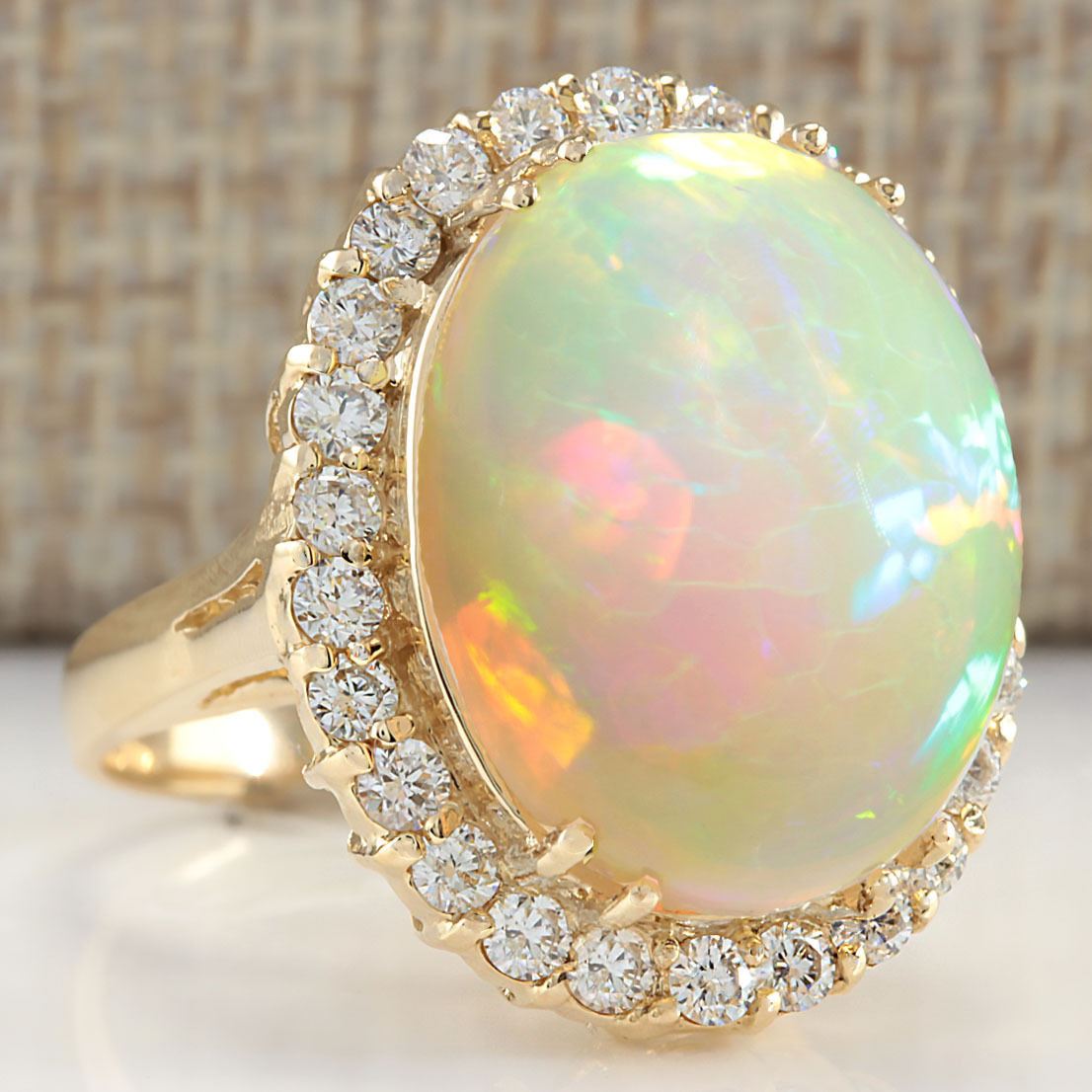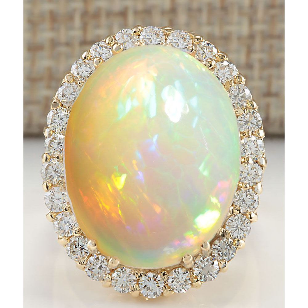 15.88 CTW Natural Opal And Diamond Ring 14K Solid Yellow Gold