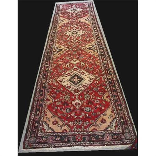 This is a hand woven runner rug from Hamedan area of Persia. Nice colours, Wool pile, cotton foundation, hand woven, plush soft pile, cc 1980's. Size is 15'9" x 3'4" exc. cond, washed, clean, ready to use. Combined shipping available as always. More photos available to email if interested.
