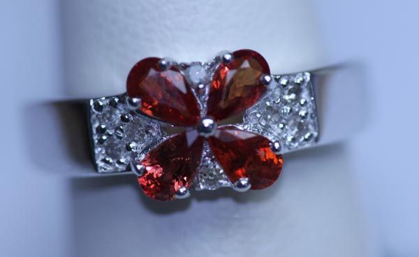 15.90 CTW ORANGE SAPPHIRE AND DIAMOND RING .925 STERLIN **|**|** 15.90 CTW ORANGE SAPPHIRE AND DIAMOND RING .925 STERLING SILVER; CENTERSTONE 0.97 CTW; DIAMOND 0.11 CTW ; MSRP: $750