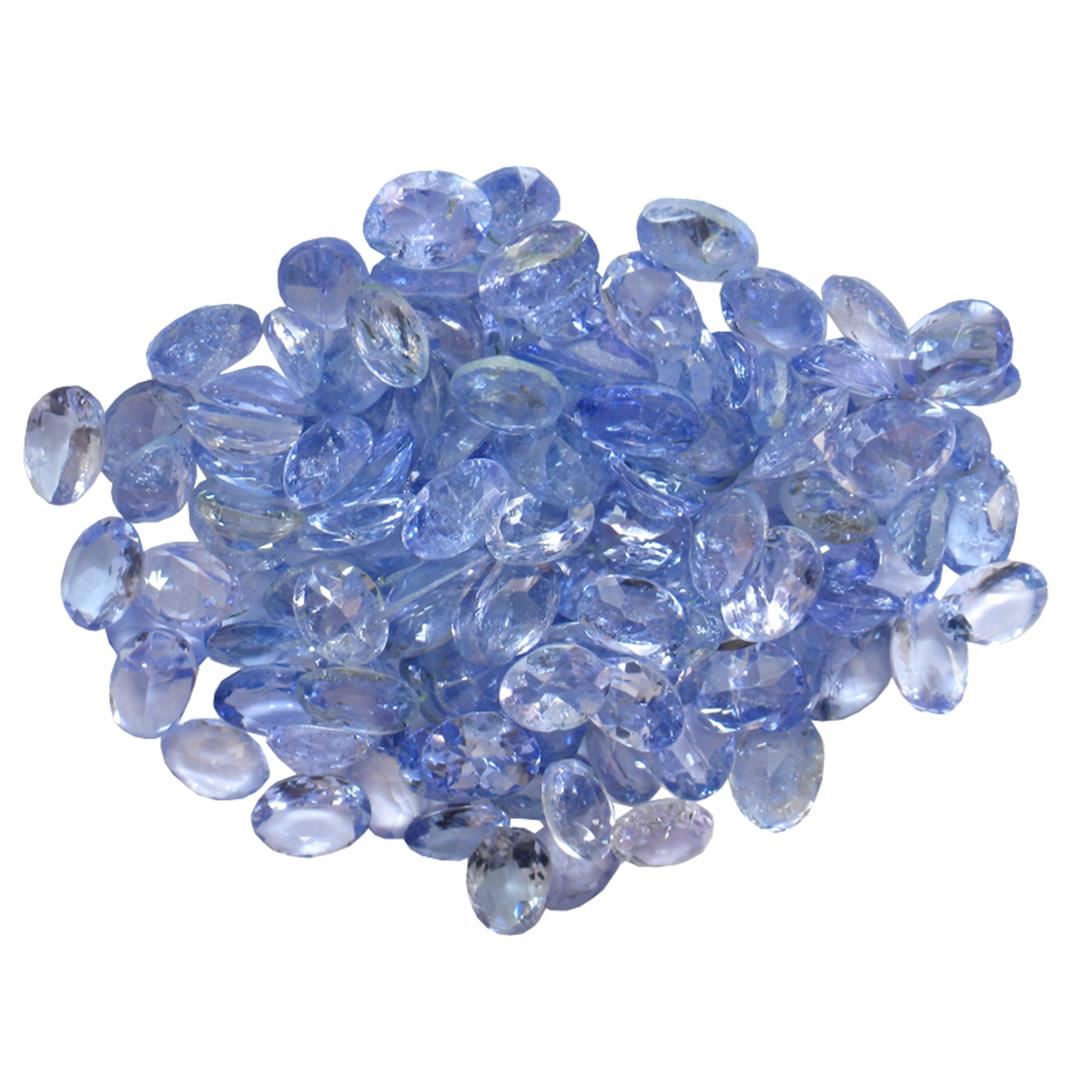 One hundred fourteen oval mixed cut natural tanzanites, measuring 4.00 x 2.50 x 1.63mm, exact total weight 15.95ct., clarity is slightly included, type I, medium, very slightly grayish, bluish violet color, (GIA bV 5/3), cut is good. Transmitting light with a minimum of distortion, transparent, Naturally occurring internal & external characteristics are present. Measurements & the color grade are an average for the group. Tanzanite is a very rare gemstone that is only found in the country of Tanzania. Originally discovered in 1967. Tiffany & Company, named the stone Tanzanite. It is found in the Usumburu Mountains that border the Umba Valley of northern Tanzania. Tanzanite occurs in gray, brown, violet, blue, reddish-purple, & green. The gem is interesting because of its exceptional pleochroism. Rotated in different directions a tanzanite will exhibit multiple changes of color. Tanzanite has a low tolerance to ultrasonic cleaning, and should not be cleaned using this method. Westfield Appraised at $1,535.00.