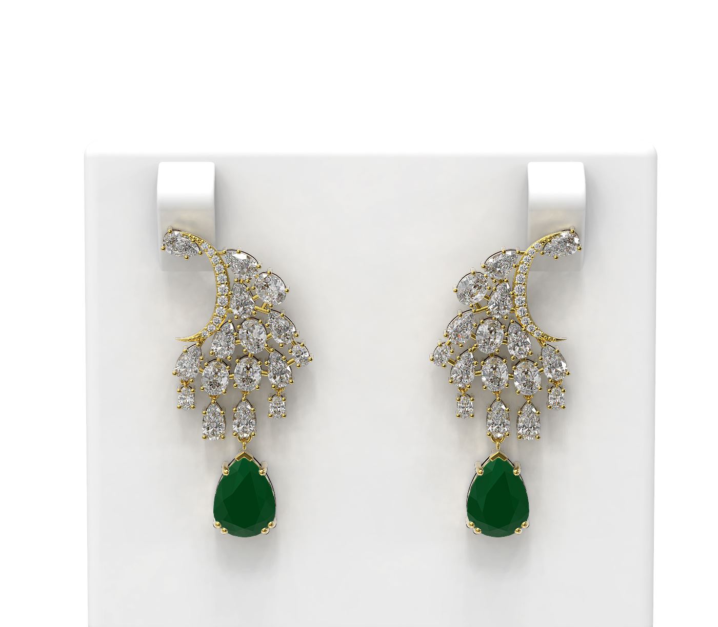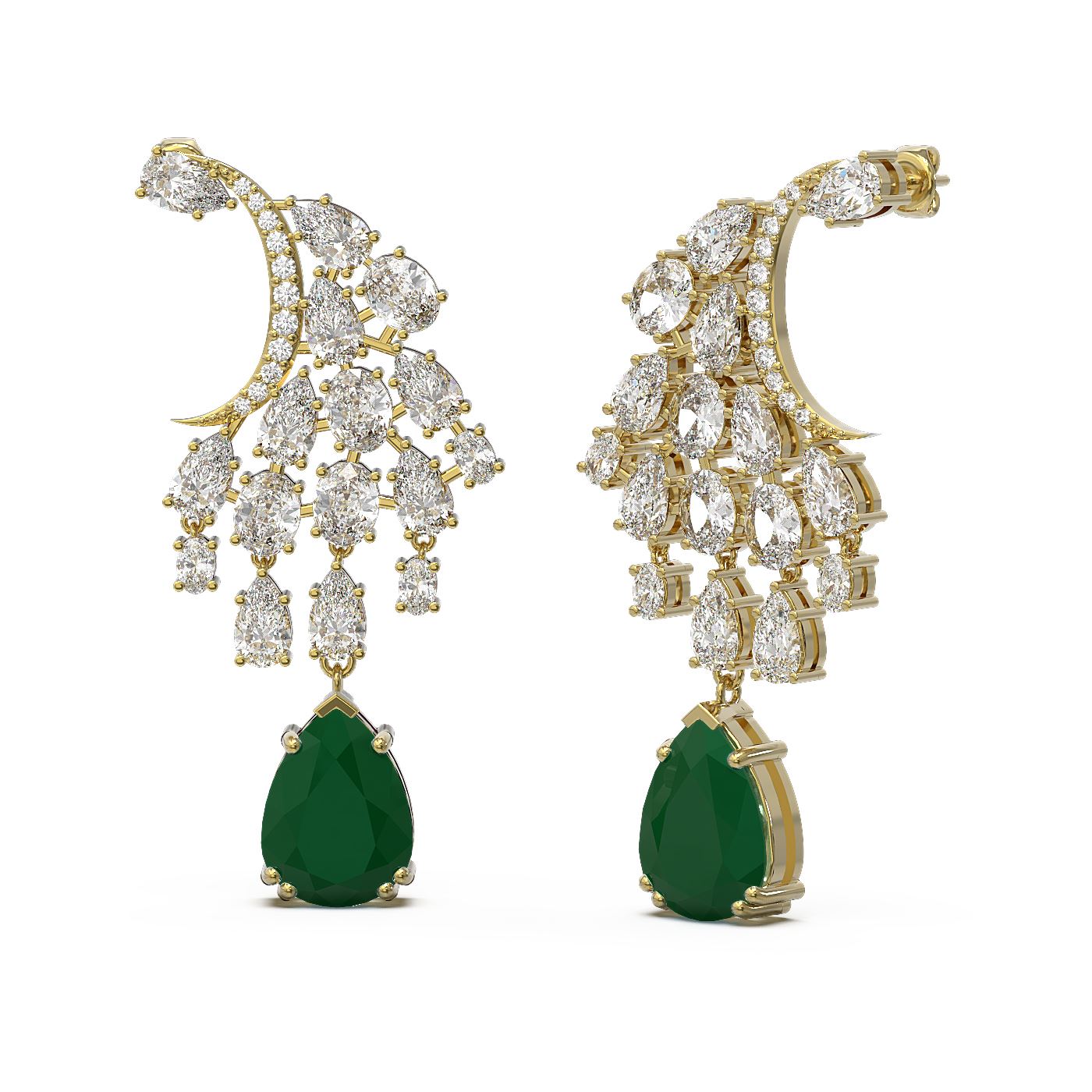 15.97 ctw Emerald & Diamond Earrings 18K Yellow Gold