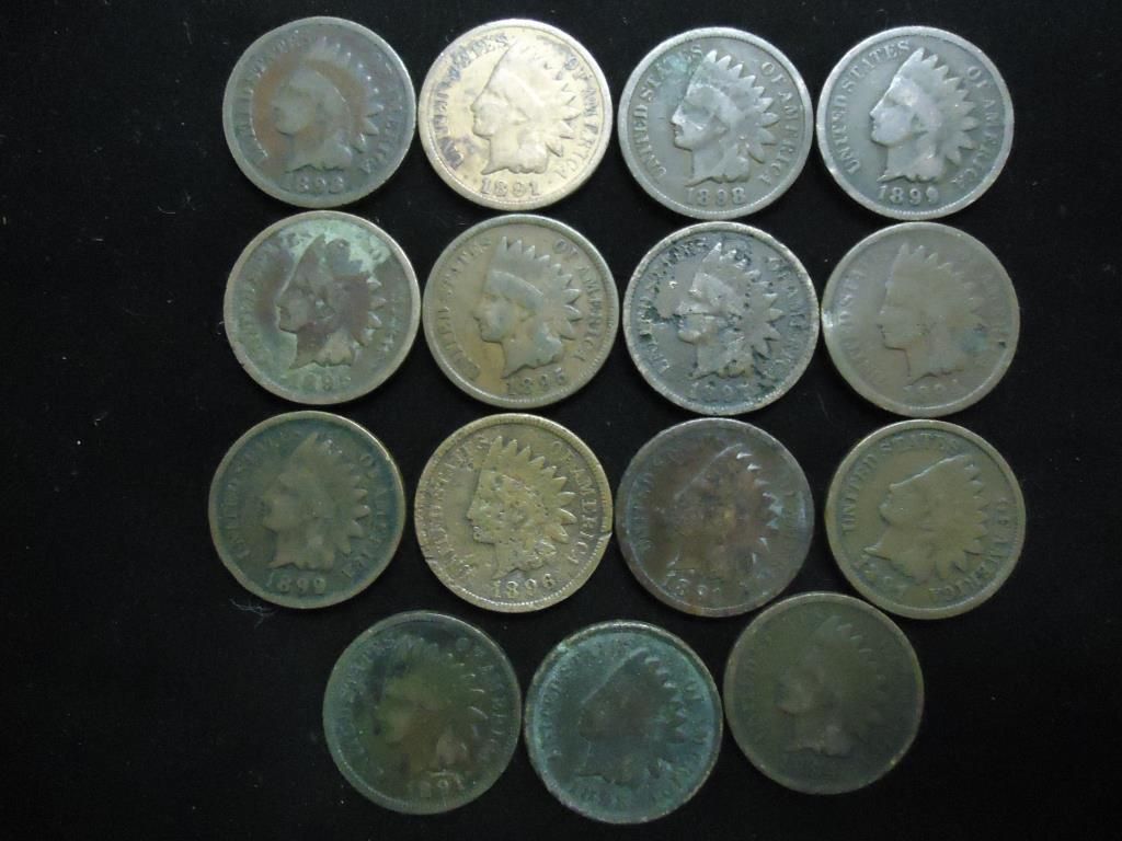 15 ASSORTED 1890'S INDIAN HEAD CENTS