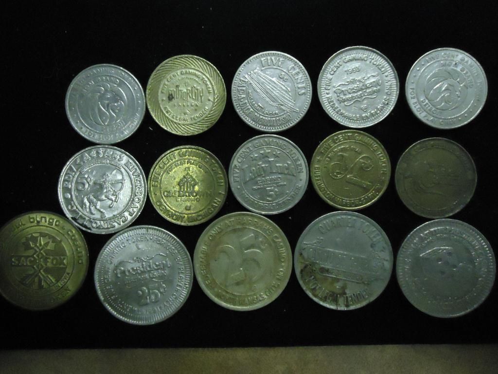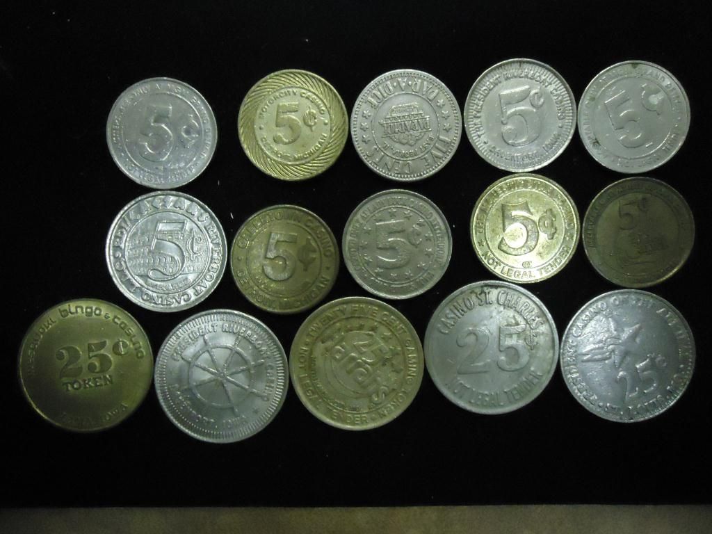 15 ASSORTED 5 CENT-25 CENT CASINO TOKENS