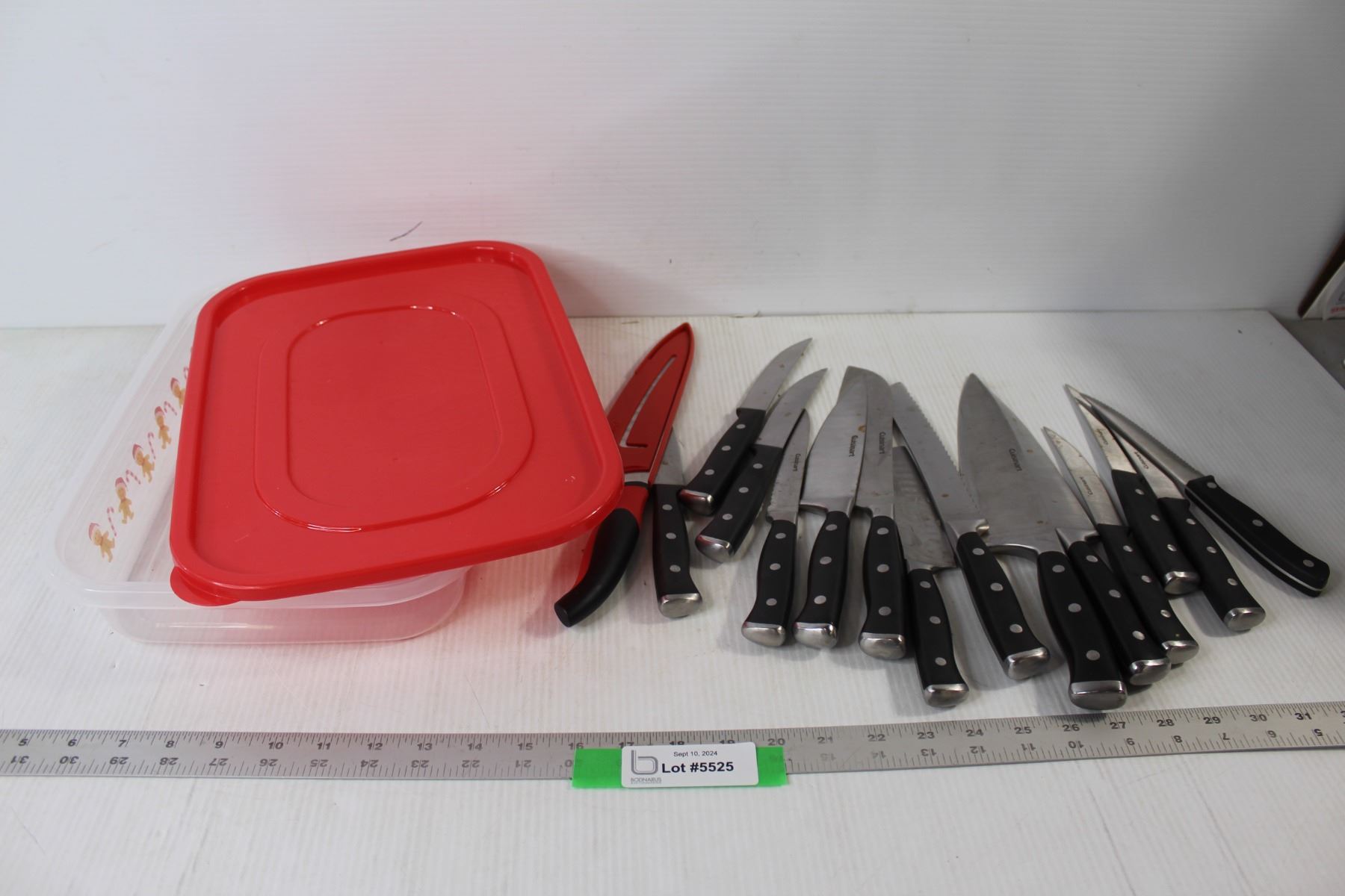 (15) Assorted Cuisinart Kitchen Knives, Christmas Baking Container
