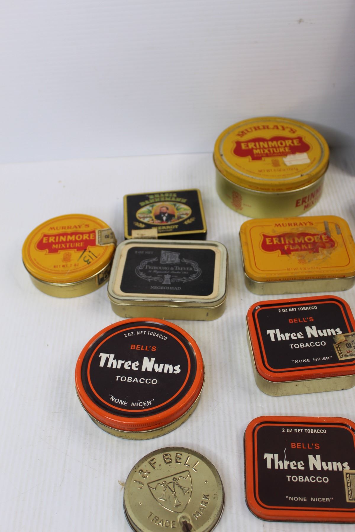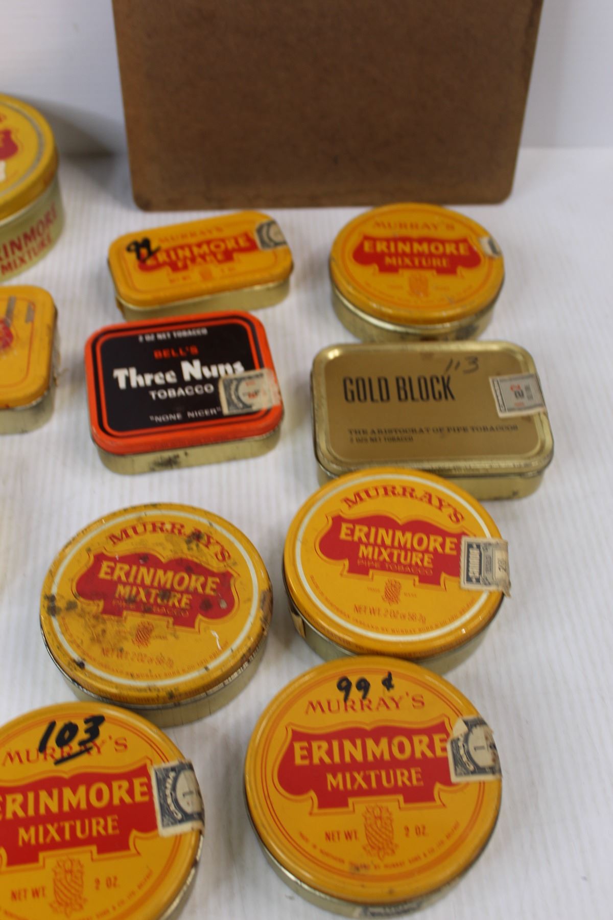 (15) Assorted Tobacco Tins, Three Nuns, Erin More, Misc., (2) Extra Lids, Clip Board