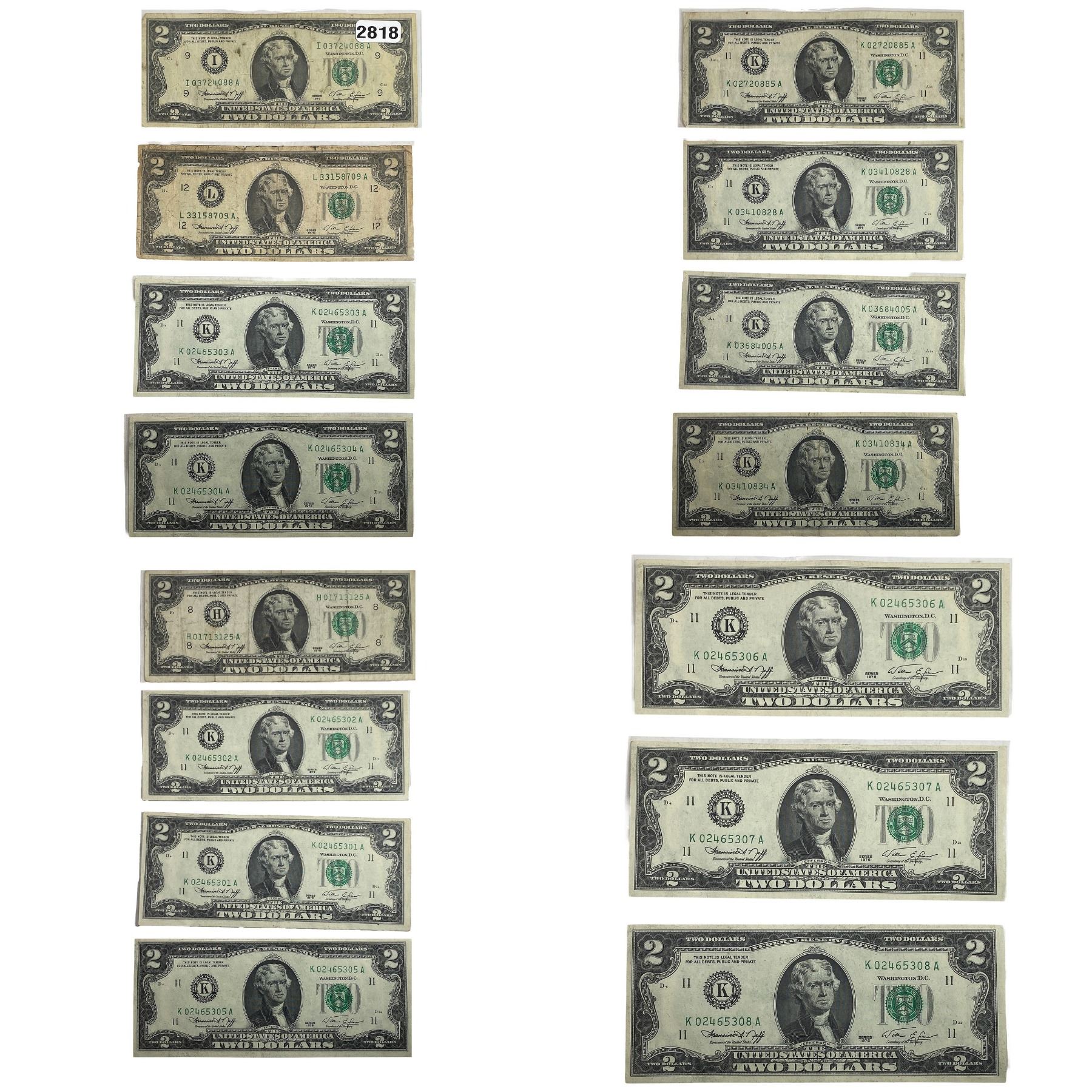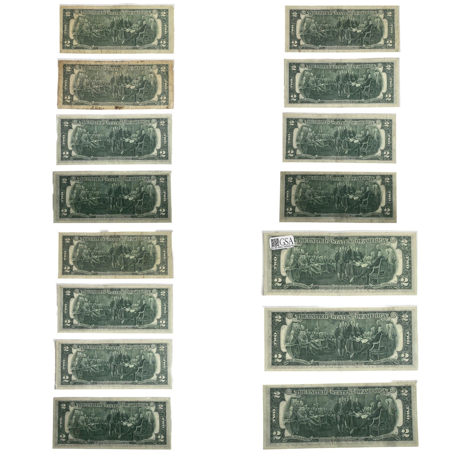 [15 Bills] $2 Federal Reserve Note