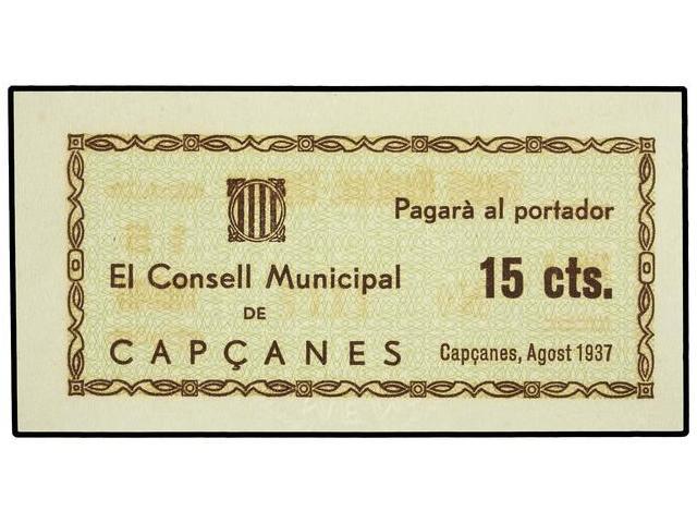 15 Cèntims. Agost 1937. C.M. de CAPÇANES. RARO. AT-654; T-764. SC.