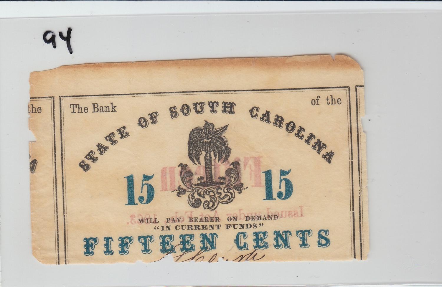 15 CENT OBSOLETE SOUTH CAROLINA 1863