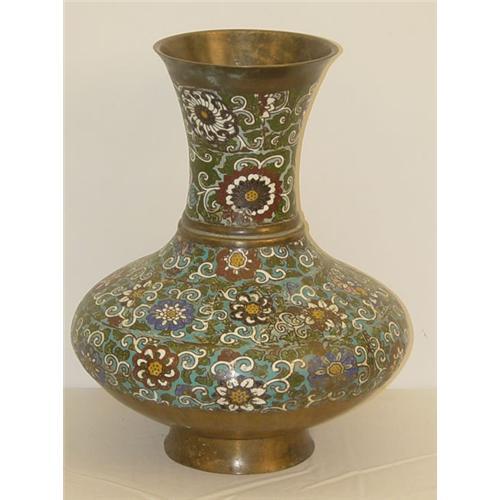 15" CHINESE CHAMPLEVE VASE (LATE 19TH-EARLY 20TH CENT.) - DENTS, DAMAGE TO BODY, IMPERFECTIONS