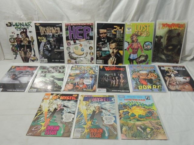 MS MYSTIC ANTINUITY COMICS APPLE VIETNAM JOURNAL KING TRACTOR PRESS FAMILY BONES ALTER EGO XAL-KOR THE HUMAN CAT COSMIC LUNCHBOX COMICS LUNAR DONUT DABEL BROTHERS THE WARRIORS IDW COMICS LAND OF THE DEAD ZOMBIES