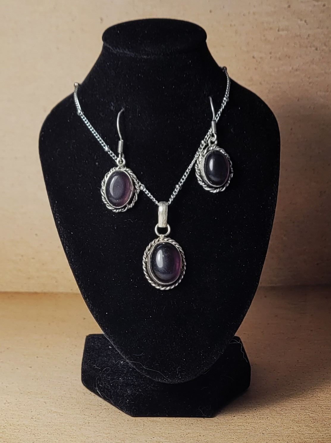JEWELERY CONSISTING OF OVAL PENDANT ON 18" CHAIN & MATCHING DROP EARRINGS. JEWELERY