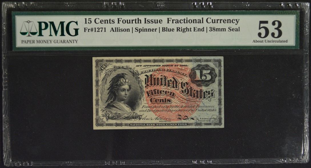 One 15 Cent Fourth Issue Fraction Note PMG 53.