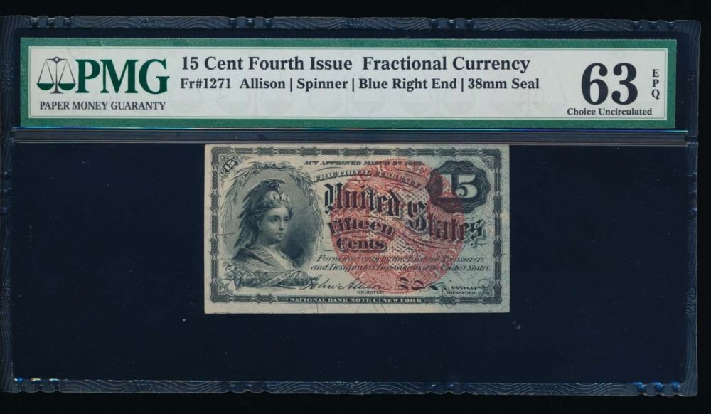 One 15 Cent Fourth Issue Fractional Note PMG 63EPQ.