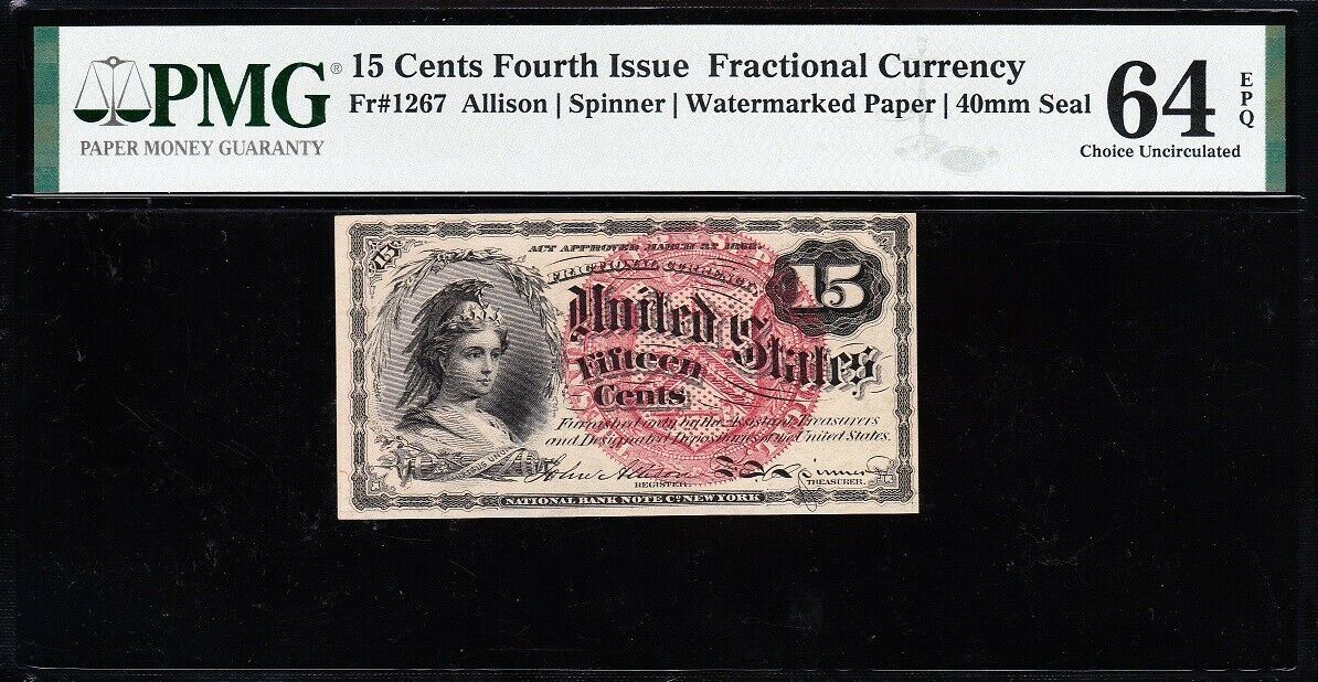 One 15 Cent Fourth Issue Fractional Note PMG 64EPQ.