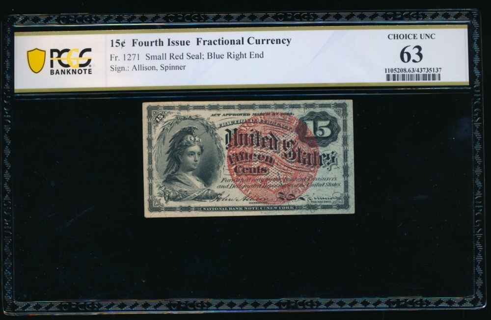 One 15 Cent Fourth Issue Fractional PCGS 63.
