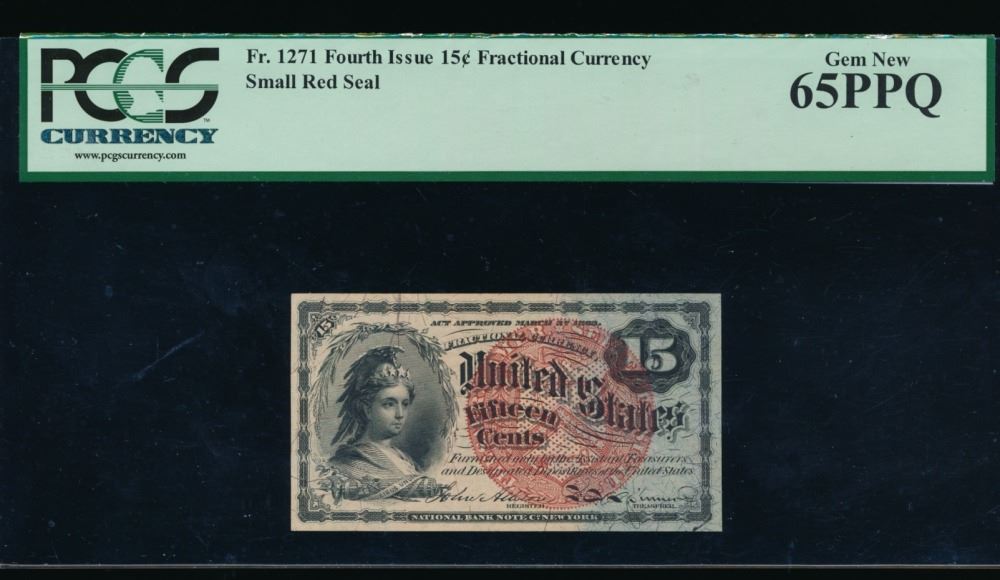 One 15 Cent Fourth Issue Fractional PCGS 65PPQ.