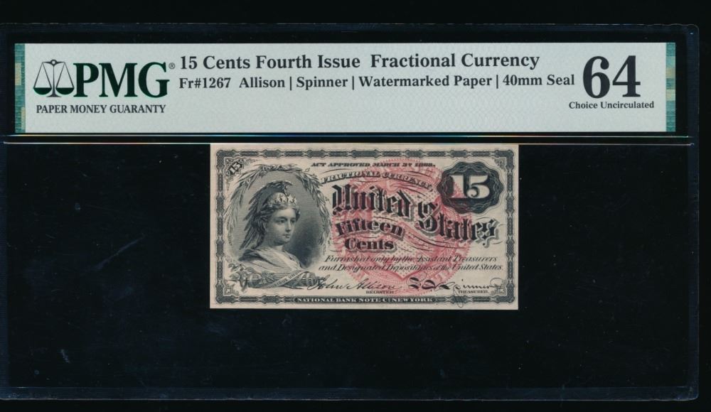 One 15 Cent Fourth Issue Fractional PMG 64.