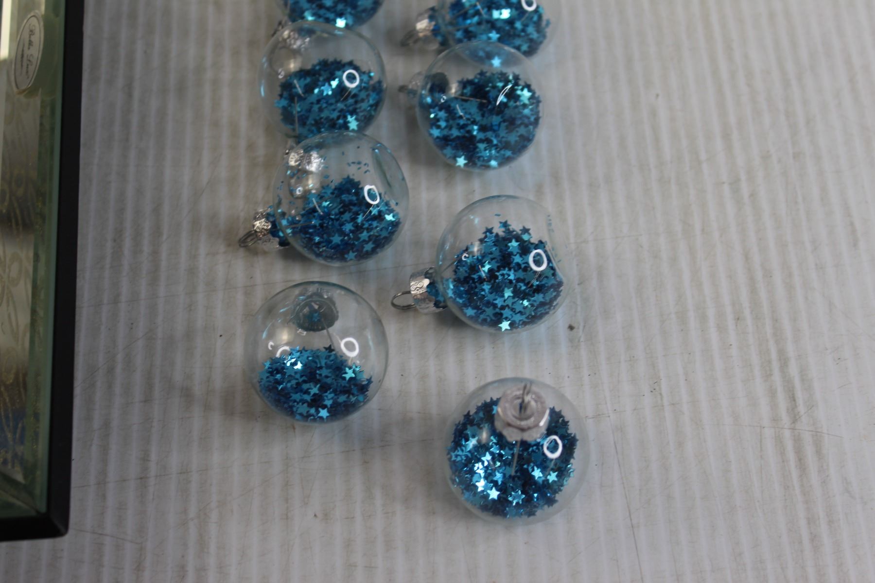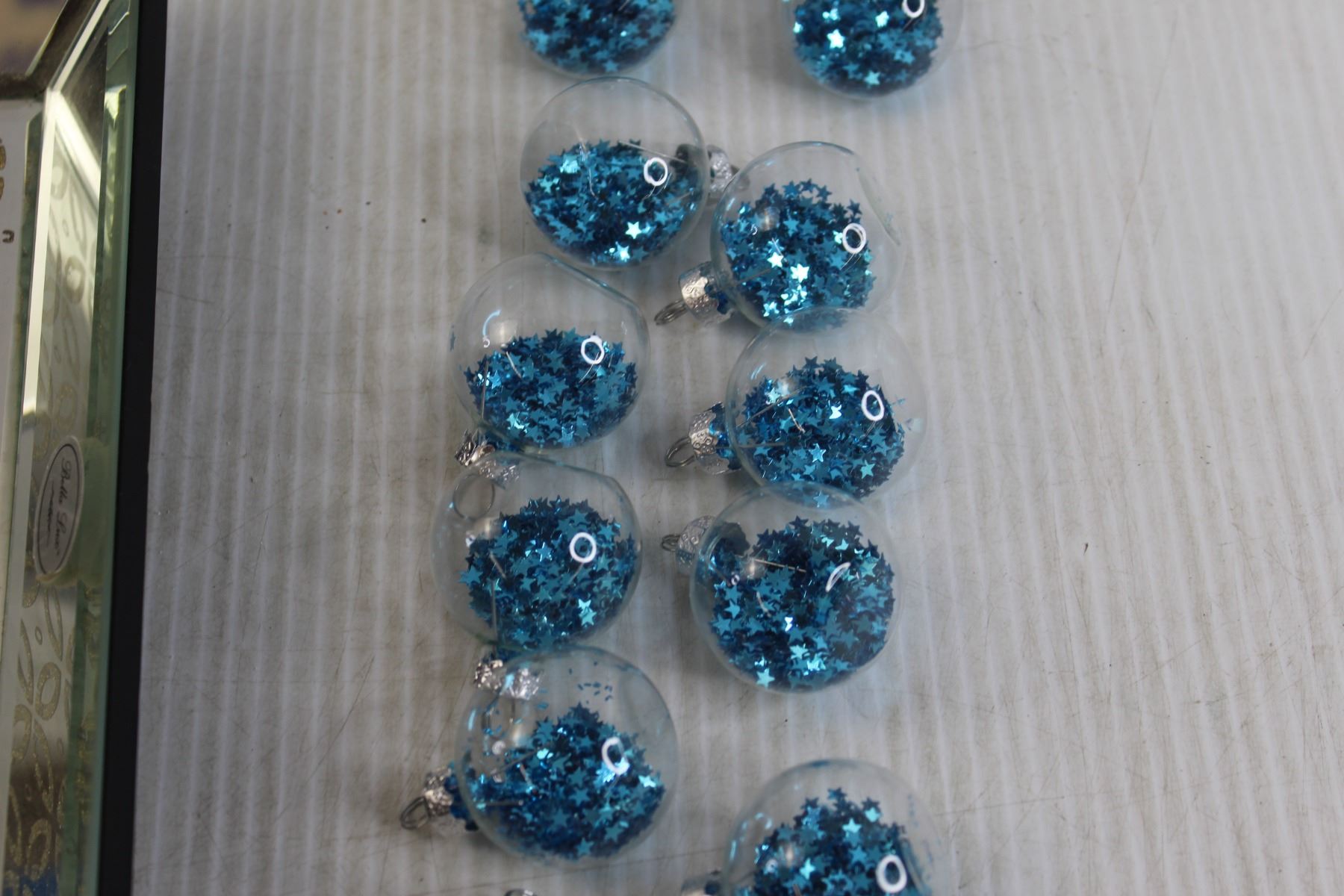 (15) Clear Ornaments with Blue Stars, Trinket Holder/Tray
