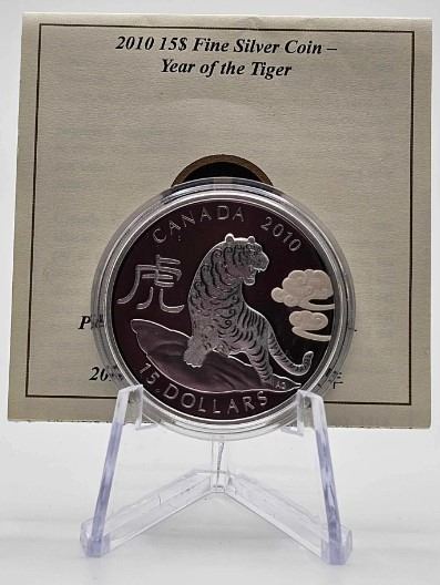 15 DOLLARS 2010 ANNEE DU TIGRE FINE SILVER .999