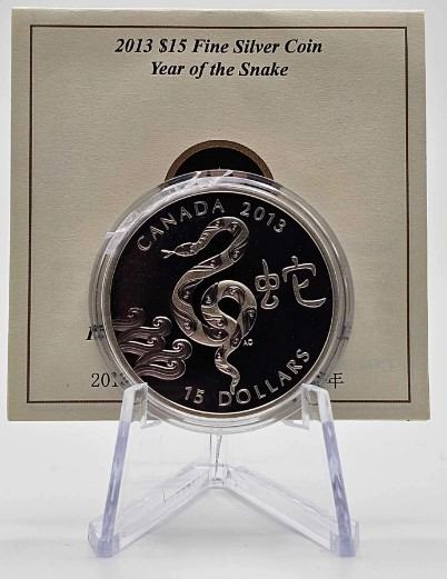15 DOLLARS 2013 ANNEE DU SERPENT FINE SILVER .999 CRACKED CAPSULE