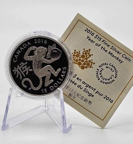 15 DOLLARS 2016 ANNEE DU SINGE FINE SILVER .999