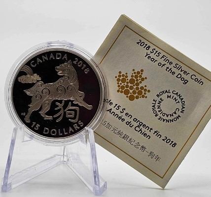 15 DOLLARS 2018 ANNEE DU CHIEN FINE SILVER .999